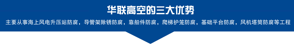 歡迎訪問鹽城市華聯(lián)高空維修防腐有限公司官方網(wǎng)站!公司主營:海上風電升壓站防腐,風機導管架除銹防腐,靠船件防腐,塔筒防腐,鋼管樁套籠防腐,基礎平臺防腐,編號標識噴涂等工程 返回首頁 | 加入收藏 | 聯(lián)系我們